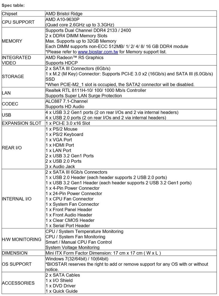 這款主板采用Mini-ITX板型設(shè)計(jì),其集成有AMD A10-9630P四核處理器(自帶AMD Radeon R5顯卡)。這款處理器的基礎(chǔ)頻率為2.6GHz,最大加速頻率高達(dá)3.3GHz。