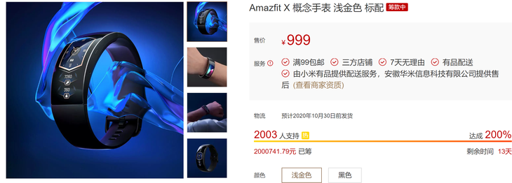 8月25日,華米科技官方宣布,Amazfit X概念手表正式上線小米有品眾籌,眾籌價(jià)999元。