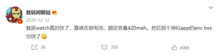 此外,@數(shù)碼閑聊站還表示,魅族智能手表將會(huì)采用嘉德生產(chǎn)的額定容量為420mah的電池。