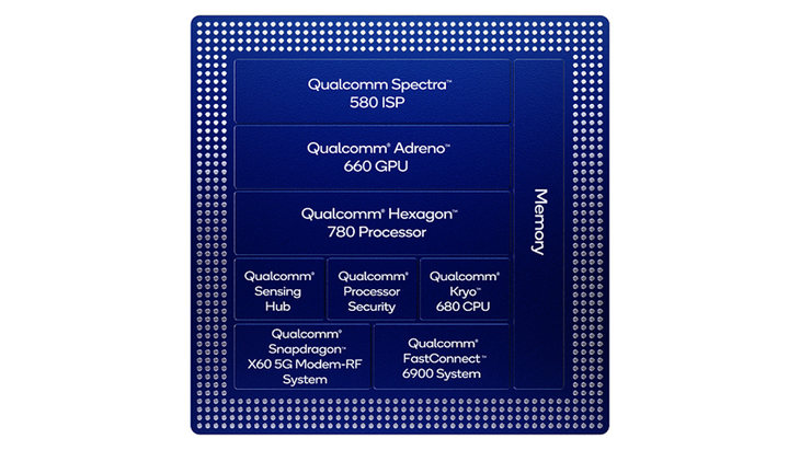 驍龍888 5G移動(dòng)平臺(tái)采用了5nm制程工藝,其搭載的Kryo 680 CPU采用了1+3+4的八核心設(shè)計(jì),一個(gè)超級(jí)核心為Arm Cortex X1,主頻達(dá)到了2.84GHz,Kryo 680也是首個(gè)基于Arm Cortex X1打造的商用CPU子系統(tǒng)。另外三個(gè)大核為A78核心,主頻為2.4GHz,四個(gè)小核心為A55,主頻為1.8GHz,Kryo 680 CPU的整體性能相較于上一代提升了25%。