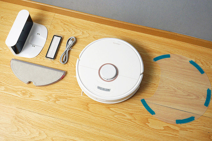 石頭掃地機(jī)器人T7采用了常見的白色機(jī)身,擁有掃地和拖地功能,除了主機(jī)外,還配送了充電樁、電源線、水箱、濾網(wǎng)、防潮墊,以及一些拖布和拖布支架。