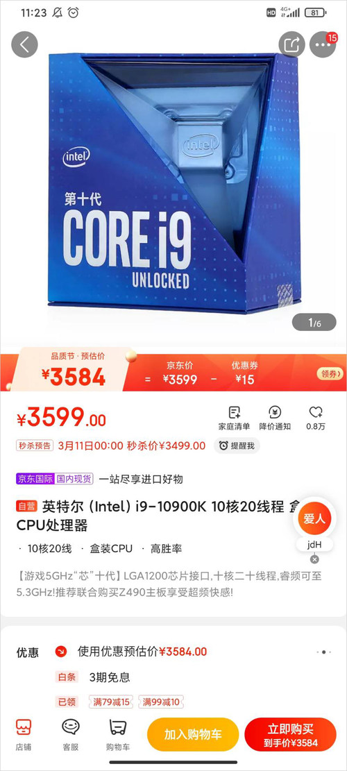 英特爾Rocket Lake第11代臺(tái)式機(jī)處理器將于預(yù)計(jì)3月30號(hào)正式開(kāi)售。為了給新產(chǎn)品讓路,10代旗艦酷睿i9-10900K處理器近期有了明顯的降價(jià)。3月11號(hào),這款處理器僅售3499元。