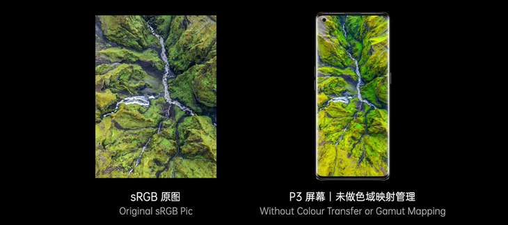 其二,這套系統(tǒng)還解決了原生安卓環(huán)境缺失自適應(yīng)色域管理的問題。它會自動對sRGB色域圖像的色彩坐標(biāo)數(shù)據(jù)做線性化和逆線性化兩次處理,最終在 DCI-P3屏上準(zhǔn)確顯示。簡單說就是實現(xiàn)了P3屏幕與sRGB內(nèi)容的自適應(yīng),讓顯示效果更加精準(zhǔn),給用戶帶來無差別的色彩視覺體驗。