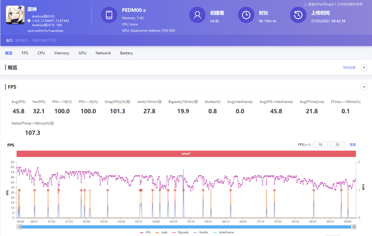 《原神》開啟極限畫質(zhì)60幀模式,在蒙德城夜晚不間斷跑圖10分鐘,最終平均幀率45.8幀,整機平均功耗5.32W。此時正面最高溫處43.7°C,背面最高溫處42.5°C,溫度控制良好。這款游戲的性能要求很高,想要流暢60幀運行,還是需要適當(dāng)降低畫質(zhì)。