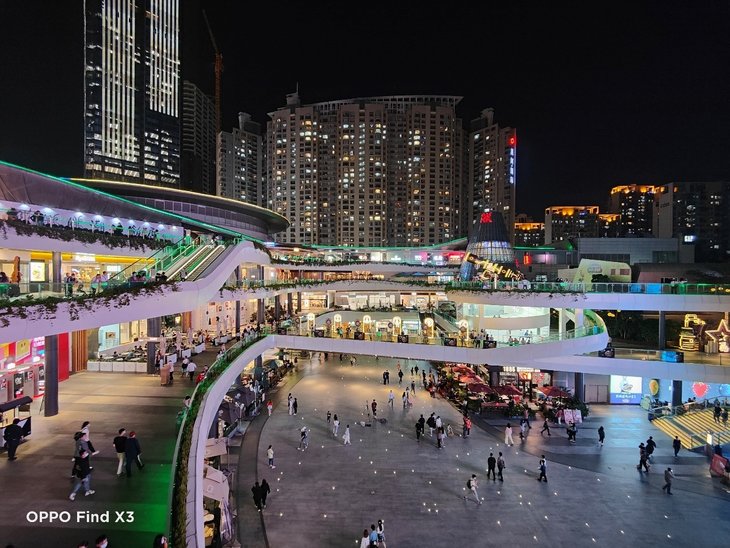 夜景方面,F(xiàn)ind X3憑借大底傳感器加持,默認(rèn)拍攝的效果就已經(jīng)相當(dāng)不錯,畫面動態(tài)范圍優(yōu)秀,色彩觀感自然,天空的純凈度也很好。