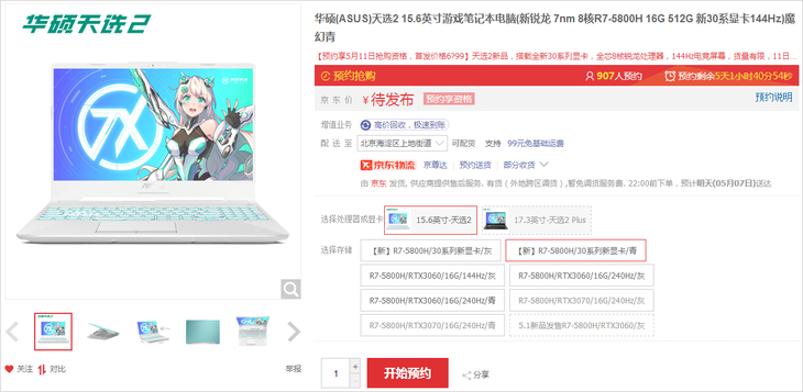 搭配RTX30系新顯卡 華碩天選2新機(jī)開啟預(yù)售