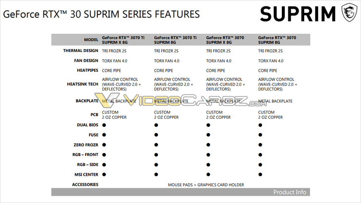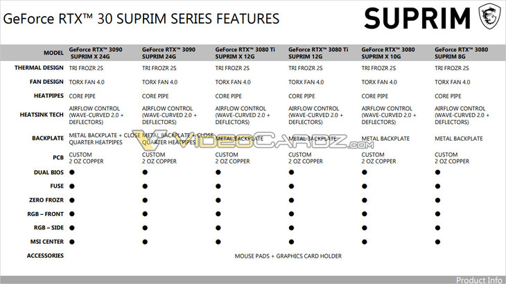 近期,外媒videocardz曝光了微星GeForce RTX 3080 Ti和RTX 3070 Ti SUPRIM系列顯卡的部分規(guī)格參數(shù),玩家們可以提前了解下。