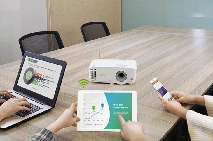 明基E520的無線投屏功能支持4個設(shè)備同時投屏,避免了多設(shè)備間的費時切換,讓比稿、比數(shù)據(jù)等多人協(xié)同辦公場景更加高效。即便突發(fā)斷網(wǎng)情況,投影儀也自帶了WiFi熱點天線,無需網(wǎng)絡(luò)依然能夠隨時隨地進(jìn)行投屏。