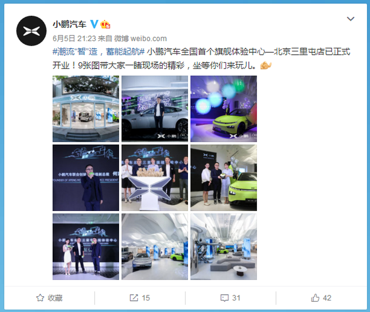 來(lái)自小鵬汽車(chē)官方微博的新消息,小鵬汽車(chē)全國(guó)首家旗艦體驗(yàn)中心現(xiàn)已開(kāi)業(yè)了,落戶(hù)在了北京三里屯。北京乃至京津翼的朋友們都可以到北京三里屯瞧一瞧。