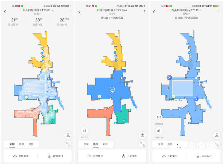 在使用實(shí)體按鍵上,石頭掃拖機(jī)器人T7 Plus的機(jī)身配備了三顆獨(dú)立的按鈕,從左到右依次是回充鍵、清掃/開機(jī)鍵以及局部清掃鍵,對應(yīng)著三種功能。即使在不使用手機(jī)APP的情況下,也可以非常輕松的使用物理按鍵對家居環(huán)境進(jìn)行快捷打掃,家中的長輩可以通過物理按鍵一鍵啟動,同樣很好的完成對于家居環(huán)境的清潔。