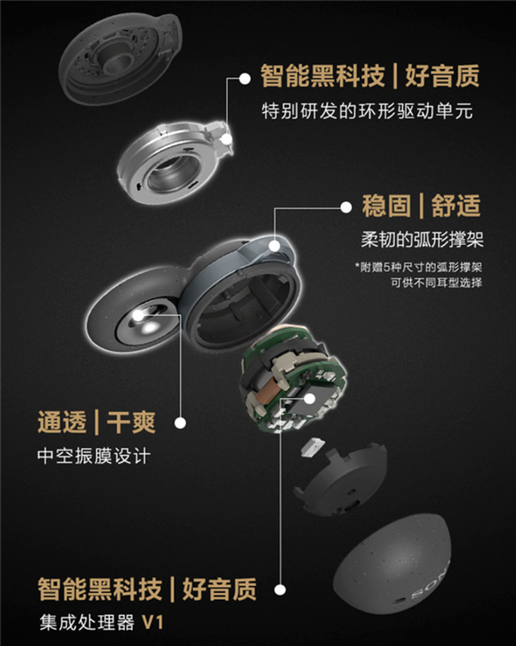 而索尼的這一款LinkBuds開放式真無線耳機采用了環(huán)形結構設計,使用了專門的環(huán)形驅(qū)動單元,配備了集成處理器V1.