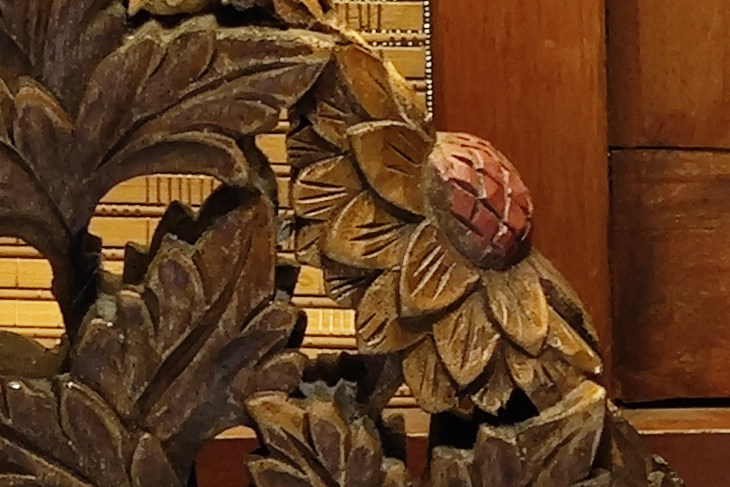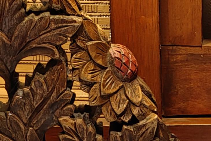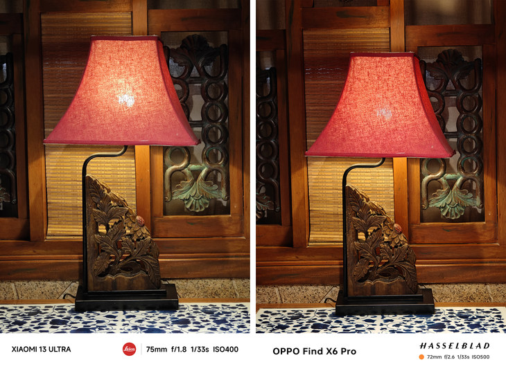 ? ? 但將照片放大后,OPPO Find X6 Pro更大尺寸的IMX890傳感器還是更有優(yōu)勢,畫面更加清晰之余,臺燈木雕的細(xì)節(jié)呈現(xiàn)也更為精致細(xì)膩,小米13 Ultra在照片放大后則稍稍有一點(diǎn)涂抹感。