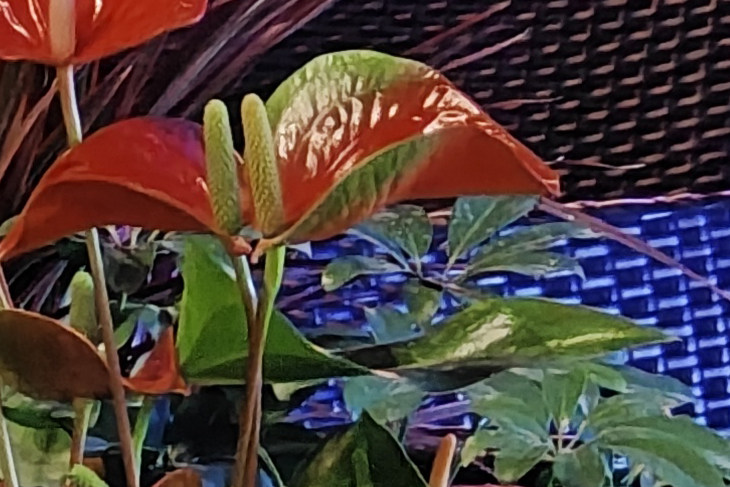 ? ? 而將照片放大后差距一下就出來了,小米13 Ultra純光學(xué)的5X變焦無論是照片清晰度還是細(xì)節(jié)還原都更加優(yōu)秀,可以輕松看出花芯的顆粒紋理。