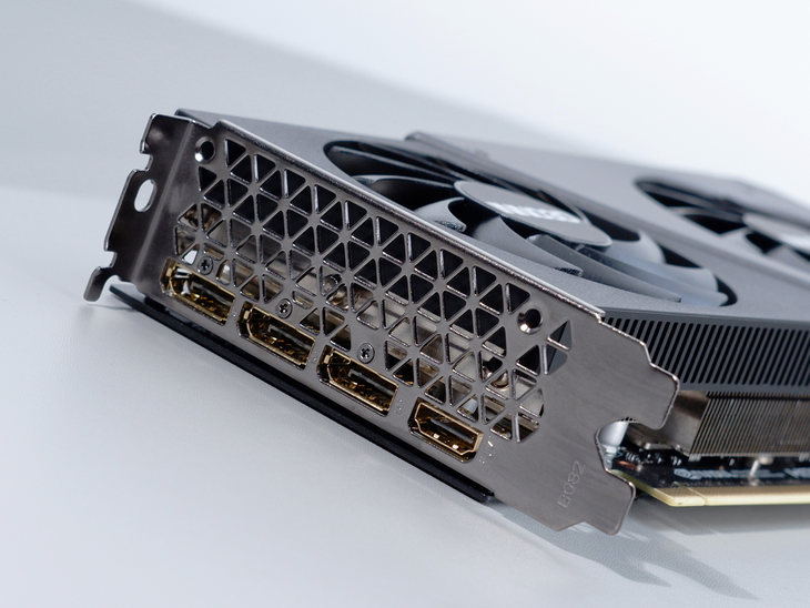 由于采用的是雙風(fēng)扇散熱設(shè)計(jì),這款顯卡的尺寸比較短,實(shí)測(cè)約25cm。加上標(biāo)準(zhǔn)雙槽厚度設(shè)計(jì),令這款顯卡的安裝兼容性很不錯(cuò)。