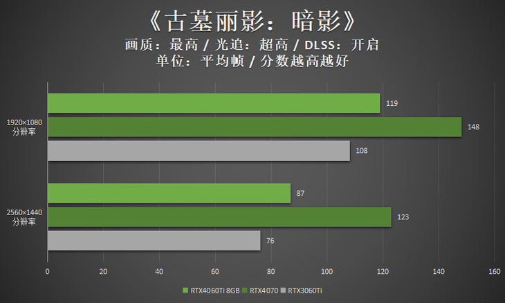 非DLSS 3游戲中,RTX4060Ti 8GB在多數(shù)游戲當(dāng)中也要明顯強(qiáng)于上代RTX3060Ti。