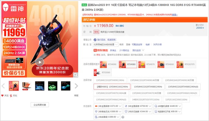 RTX4080游戲本不到1萬2!雷神ZERO 2023魅影橙618大促