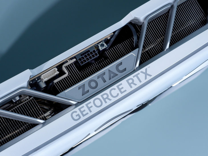 散熱器頂部上面印有“GEFORCE RTX”以及“ZOTAC”的字樣。