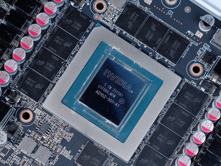 RTX4090基于AD102-300(或是AD102-301)顯示核心設計,采用TSMC 4N工藝制程,芯片面積為608平方毫米,晶體管密度達到了763億,具備高達16384個CUDA核心,相比較于上一代產(chǎn)品提升非常明顯。而這一代的核心還進一步提升了頻率,因此能帶來更好的性能表現(xiàn)。