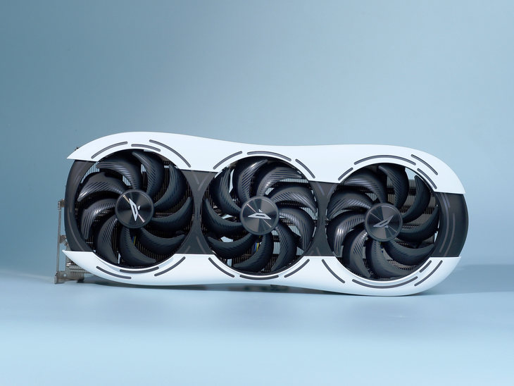 索泰GeForce RTX 4090 PGF OC顯卡采用了圓潤的造型設計,身披白色戰(zhàn)甲,非常適合搭配白色機箱使用。