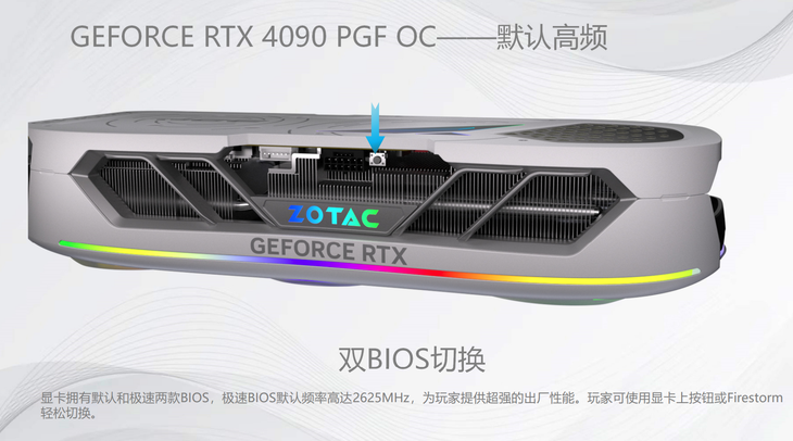 其中“ZOTAC”字樣同樣設計有ARGB燈效模塊。