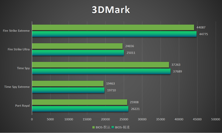 同時,相比默認BIOS,極速BIOS模式下的表現(xiàn)確實是要更優(yōu)一些的。