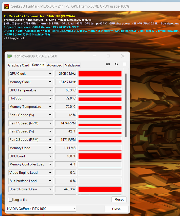 利用FurMark,筆者將對索泰GeForce RTX 4090 PGF OC顯卡進行壓力測試。