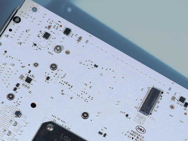 這款主板背面還配備了一處M.2固態(tài)硬盤(pán)安裝位,規(guī)格同樣為PCIe 4.0 x4。