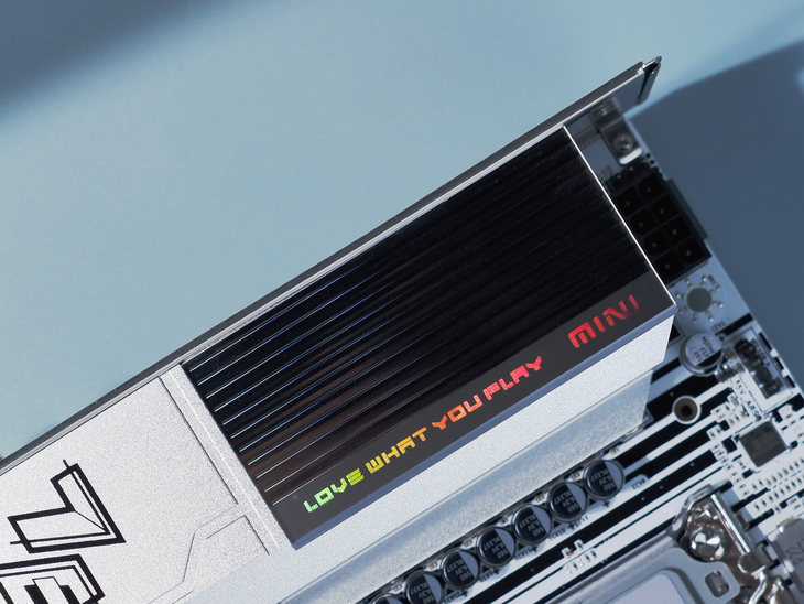 背板I/O接口區(qū)域的防護(hù)罩上面設(shè)計(jì)有“76”字樣,以及“LOVE WHAT YOU PLAY”和“MINI”的鐳射字體點(diǎn)綴?!盠OVE WHAT YOU PLAY“,可以翻譯成:愛(ài)你所愛(ài)!