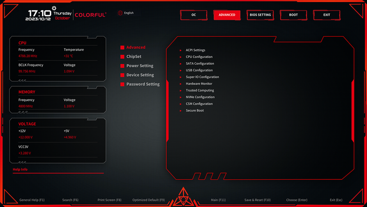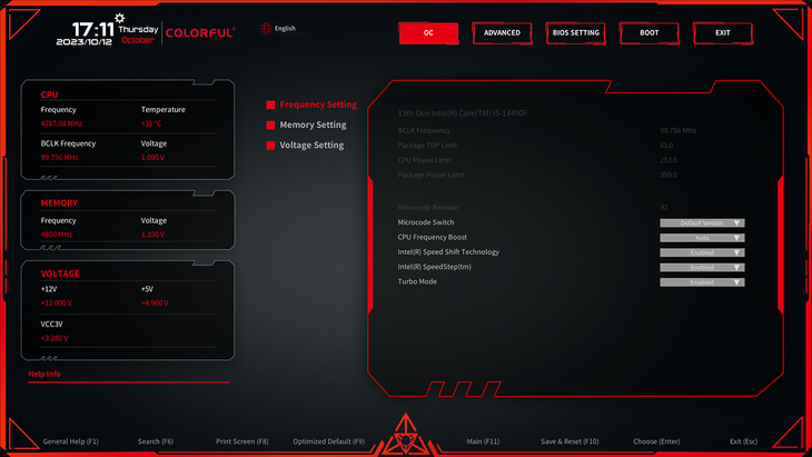 七彩虹CVN B760I FROZEN WIFI D5 V20 登陸艦主板采用了簡(jiǎn)潔直觀的BIOS設(shè)計(jì)。