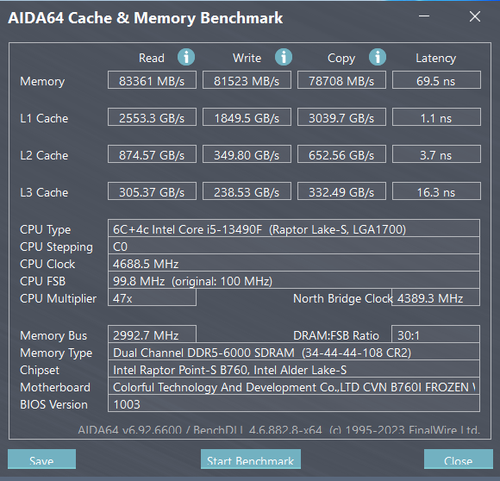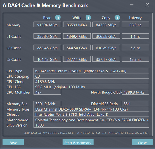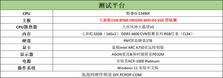 接下來(lái),筆者為七彩虹CVN B760I FROZEN WIFI D5 V20 登陸艦主板搭載了13代酷睿i5-13490F處理器以及一套2×16GB DDR5-6600 CL34高頻內(nèi)存,將對(duì)這款主板進(jìn)行上機(jī)實(shí)測(cè)。