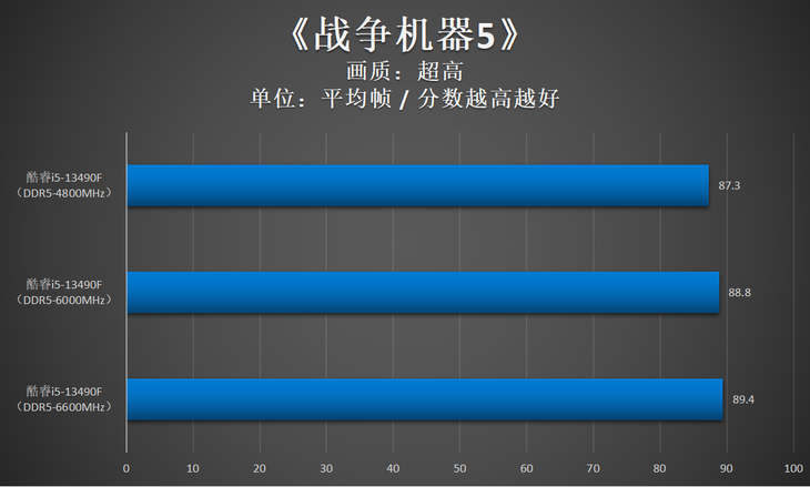 在《戰(zhàn)爭(zhēng)機(jī)器5》這款游戲?qū)崪y(cè)當(dāng)中,高頻DDR5內(nèi)存的加持也有助于13代酷睿平臺(tái)的游戲性能提升。