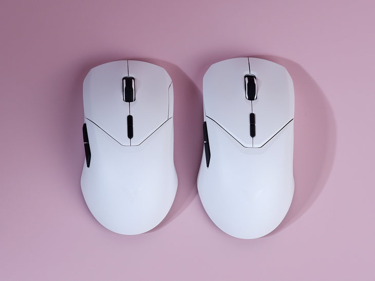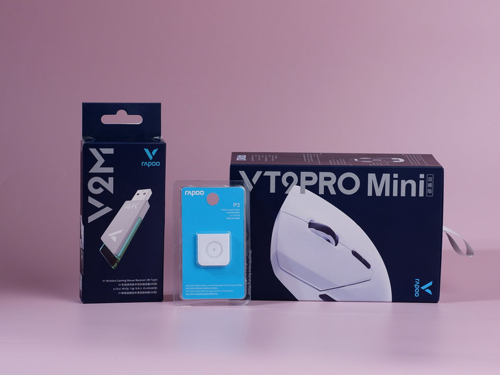 筆者將雷柏VT9PRO mini和雷柏VT9PRO放在一起進(jìn)行對(duì)比。明顯能夠看出VT9PRO mini的尺寸要比VT9PRO略小一些。
