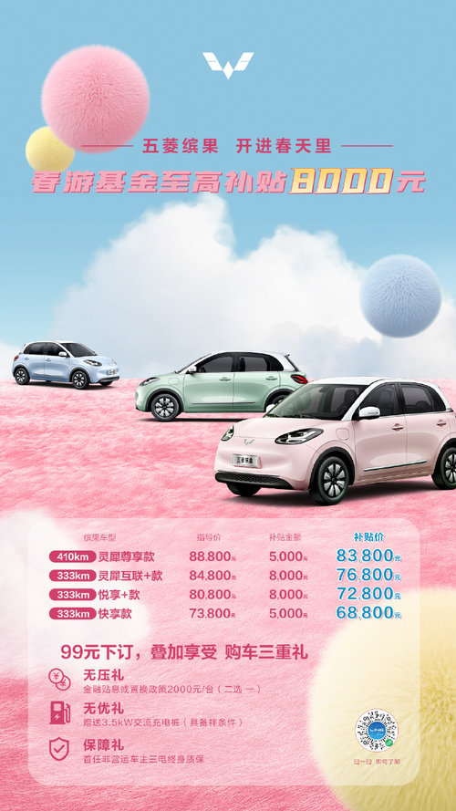 五菱繽果目前共推有4夸車型。其中333km靈犀互聯(lián)+款和333km悅享+款這2款車型降幅均為8000元。