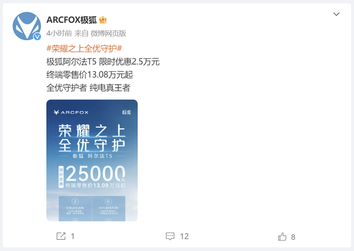 北汽極狐開卷!極狐阿爾法T5全系直降2萬5