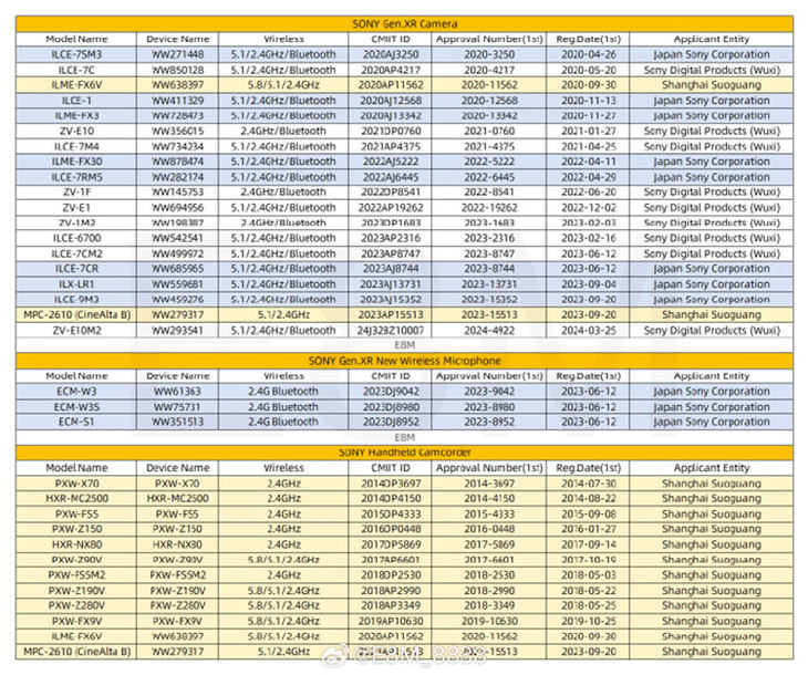 索尼在國內(nèi)注冊新機(jī) 極有可能是新款Vlog微單ZV-E10 II