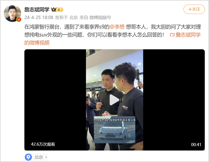 理想汽車后續(xù)純電車型會延續(xù)MEGA的外觀嗎?CEO李想在北京車展上給出了答案