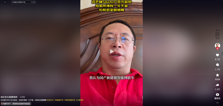 周鴻祎將直播拍賣自己的邁巴赫S600:起拍價600元,主要是為支持國產(chǎn)新能源汽車
