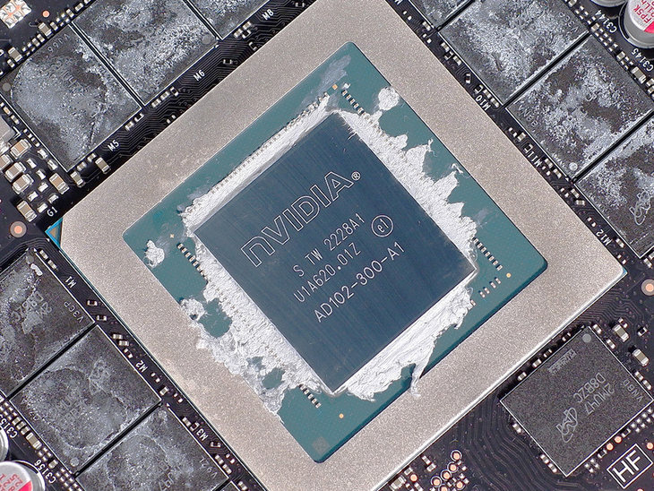 旗艦級的RTX4090就是基于AD102顯示核心設(shè)計(jì)的。該芯片面積為608平方毫米,外觀尺寸要比AD103顯示核心明顯大不少。