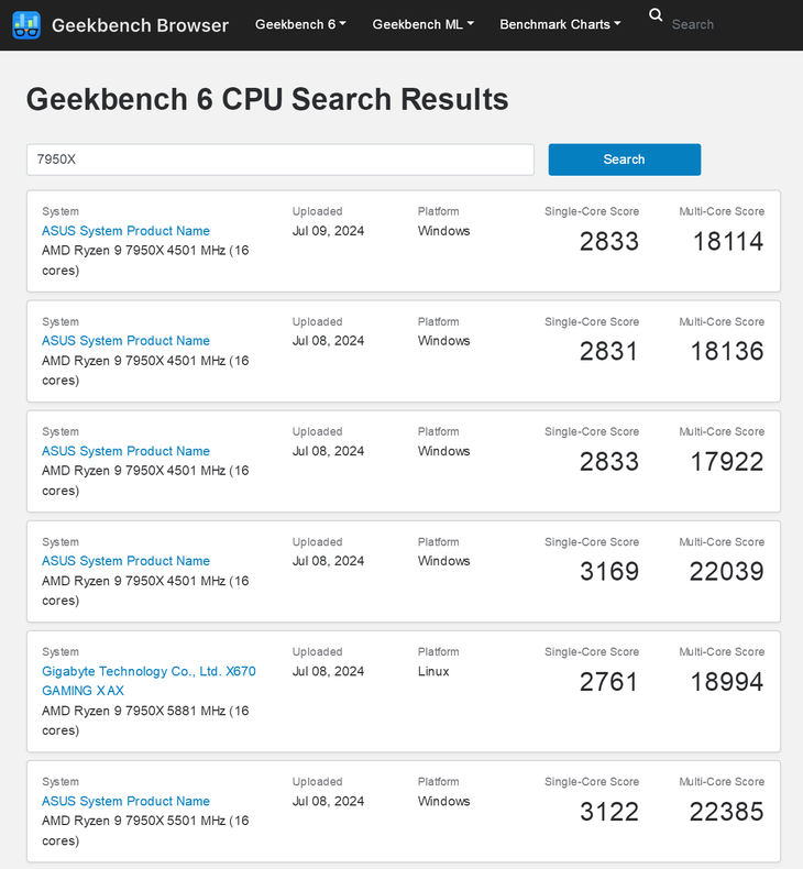 (現(xiàn)役AMD旗艦銳龍9 7950X的geekbench成績(jī))
