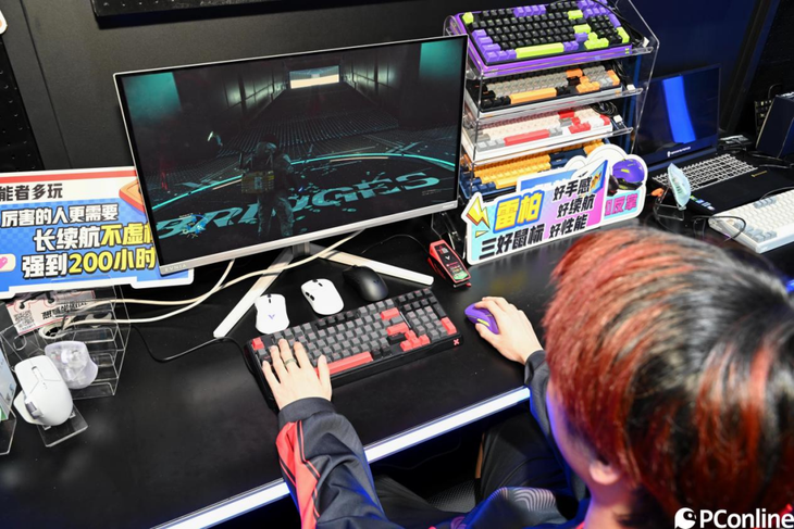從精彩的硬核展示到沉浸的游戲互動體驗,全方位向硬核游戲玩家、游戲發(fā)燒友、二次元玩家展現(xiàn)了品牌的核心自研技術(shù)??芍苯由鲜煮w驗的C+cilck按鍵預(yù)壓較調(diào)技術(shù),一種引領(lǐng)電競館更迭的科技力量也在展會上體現(xiàn)則更為直觀,百臺抗干擾、支撐更長續(xù)航時間的鍵鼠也將水友賽的娛樂體驗直接拉滿。