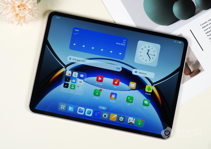 當(dāng)?shù)凇文玫絆PPO Pad 3 Pro的時(shí)候,首先就會(huì)對它輕薄的設(shè)計(jì)感到驚喜,12.1英寸的尺寸重量只有586g,薄至6.49mm,將平板拿到手中并沒有墜手的感覺,方便隨身攜帶。