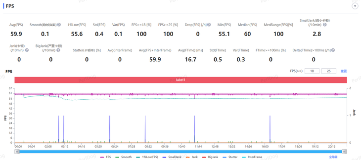 在2.1K畫質(zhì)下,經(jīng)過PerfDog進(jìn)行測試,《原神》須彌城跑圖的平均幀率為59.9FPS,不僅畫面顯示效果優(yōu)秀,而且?guī)室不究梢赃_(dá)到滿幀的效果,在游戲過程中并沒有出現(xiàn)明顯的卡頓情況,幀率波動(dòng)也不明顯。