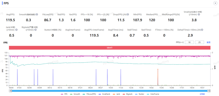 如果是將《原神》畫質(zhì)調(diào)整為1.7K,則可以實(shí)現(xiàn)120FPS的幀率運(yùn)行《原神》,OPPO Pad 3 Pro目前獨(dú)家支持120幀《原神》,經(jīng)過PerfDog測試,平均幀率也可以穩(wěn)定在119.5FPS,帶來高幀率滿幀游戲體驗(yàn)。