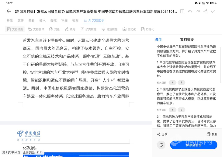 除此之外,OPPO Pad 3 Pro還在文檔中深度整合了AI功能,可以利用文檔摘要功能快速完成對稿件內(nèi)容的分析與整理,字?jǐn)?shù)再多的文檔內(nèi)容也不用擔(dān)心,OPPO Pad 3 Pro可以幫你完成內(nèi)容概括,從而提升辦公的效率。