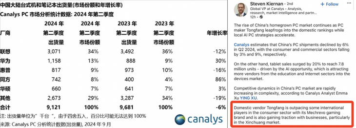 據(jù)某知名分析機(jī)構(gòu)的最 新數(shù)據(jù)顯示,2024年9月機(jī)械革命在中國(guó)游戲本市場(chǎng)占比已經(jīng)高達(dá)約20%,穩(wěn)居市場(chǎng)前3。另?yè)?jù)Canalys調(diào)研機(jī)構(gòu)此前發(fā)布的2024年2季度中國(guó)大陸 PC 出貨量分析報(bào)告,其中最為亮眼的莫過(guò)于機(jī)械革命實(shí)現(xiàn)年增漲率取得86%的爆發(fā)式增長(zhǎng),分析師特別指出:“機(jī)械革命品牌在消費(fèi)領(lǐng)域超越了國(guó)際品牌!”這一數(shù)據(jù)不僅反映了機(jī)械革命在筆記本市場(chǎng)的強(qiáng)勁實(shí)力,也預(yù)示著其未來(lái)有著更加廣闊的發(fā)展空間。