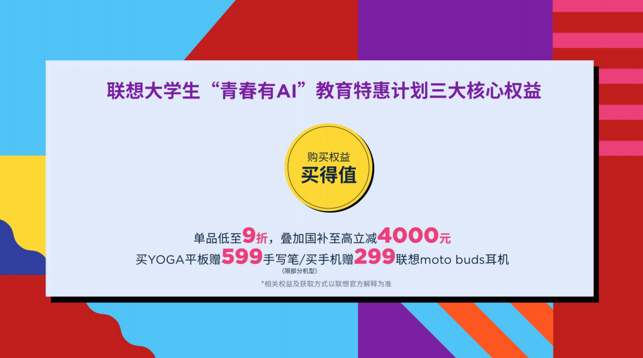 聯(lián)想此前官宣的“青春有AI”教育特惠計劃包含了購買、服務(wù)和成長三大核心權(quán)益,旨在為全國高校在校生及應(yīng)屆高考生,提供從AI設(shè)備購買、無憂換新售后到個人職業(yè)成長的全方位支持。在準(zhǔn)大學(xué)生和大學(xué)畢業(yè)生群體中,聯(lián)想通過一系列政策的推出切實地為學(xué)子們解決學(xué)業(yè)和工作上的焦慮問題。