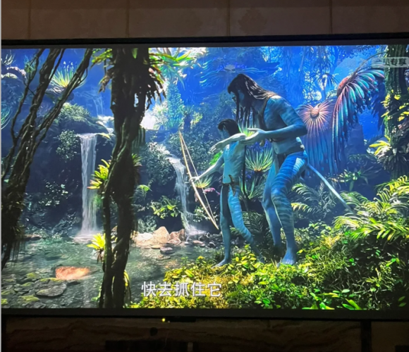 實(shí)測的2100 CVIA流明亮度可滿足白天、夜晚全天候的觀影需求。使用時,搭配100英寸抗光幕,無需拉窗簾也能呈現(xiàn)出清晰明亮的畫面,加上原生1080P分辨率和HDR10+動態(tài)優(yōu)化技術(shù),播放《阿凡達(dá)2水之道》時,潘多拉星球的熒光植被色彩過渡自然,層次感十足,海邊礁石暗部紋理分明,每一次細(xì)節(jié)都被清晰呈現(xiàn)。