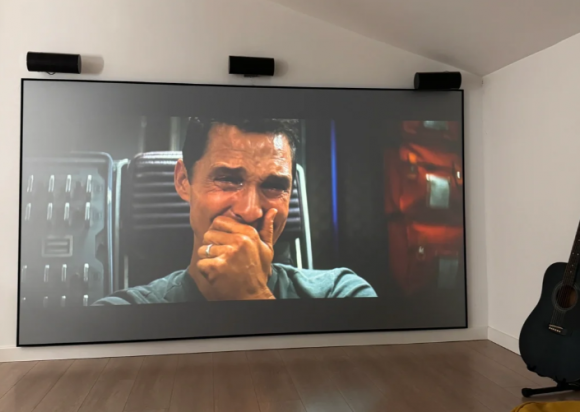 客廳影院:大眼橙X30激光投影儀2.米即可投出120英寸超級大屏,搭配抗光幕布,沉浸感堪比電影院;
