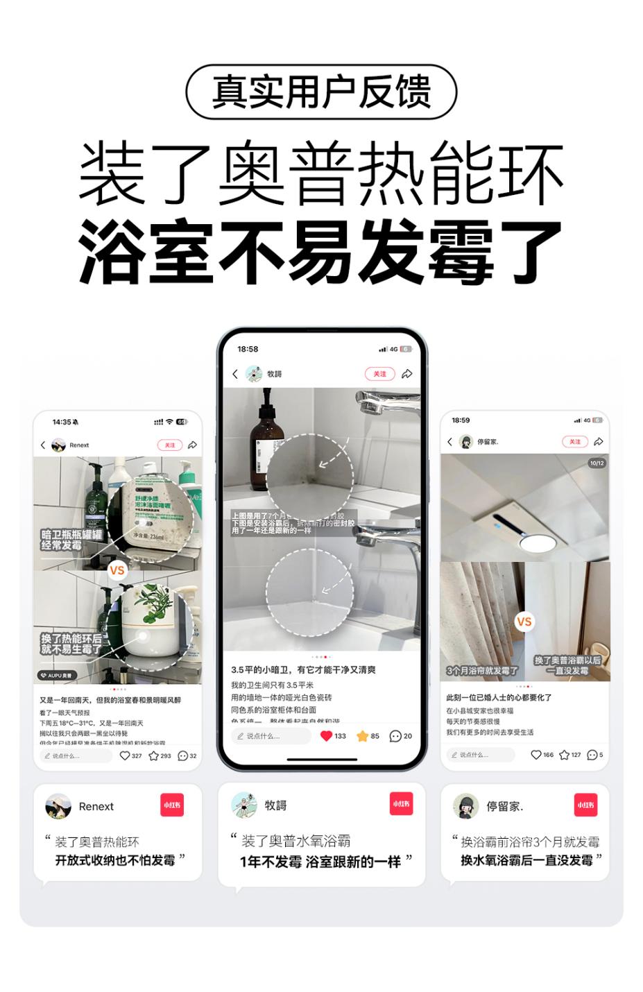 在梅雨季發(fā)霉的墻角前,在孩子打翻洗澡水后的積水里,在寵物毛發(fā)引發(fā)的異味中,中國家庭對(duì)浴室健康的關(guān)注早已超越了“冷暖之爭”。奧普熱能環(huán)雙氧浴霸自2021年上市之后一直爆火至今,熱賣超60萬臺(tái),引流行業(yè)環(huán)形浴霸風(fēng)潮,恰恰印證了這一趨勢(shì)——除菌不再是附加功能,而是衛(wèi)浴空間的生存底線,技術(shù)必須回答更尖銳的命題:如何讓健康防護(hù)像呼吸一樣自然?