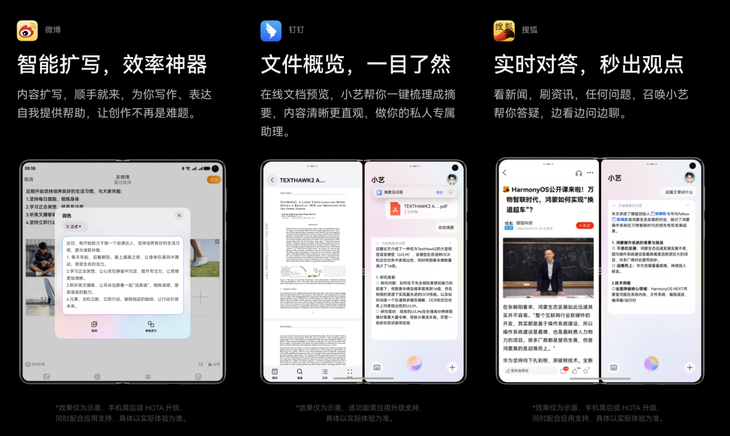 此外,華為Mate X6支持到手升級的鴻蒙操作系統(tǒng) 5也非常值得一提。鴻蒙操作系統(tǒng)作為全球移動終端操作系統(tǒng)的第三極,已經(jīng)深刻改變了移動智能終端的交互方式,尤其是針對折疊屏的超大屏設(shè)計(jì),鴻蒙操作系統(tǒng)更是帶來了諸多獨(dú)特優(yōu)化,讓所有應(yīng)用都能夠適配大屏。例如金融從業(yè)者查看股市行情場景,其將手機(jī)展開后,應(yīng)用將從直板機(jī)的豎屏模式,絲滑切換到平板的大屏模式,方便其查看完整的K線圖;查看金融新聞場景,平板模式的右屏將顯示文章對應(yīng)的K線圖,為其帶來便利。與此同時(shí),鴻蒙AI也針對大屏進(jìn)行了適配,可通過左右分屏的方式,幫助用戶處理各種事項(xiàng),包括屏幕識別、網(wǎng)頁翻譯、文檔總結(jié)、報(bào)告撰寫等,讓用戶無需在不同應(yīng)用之間反復(fù)切換。